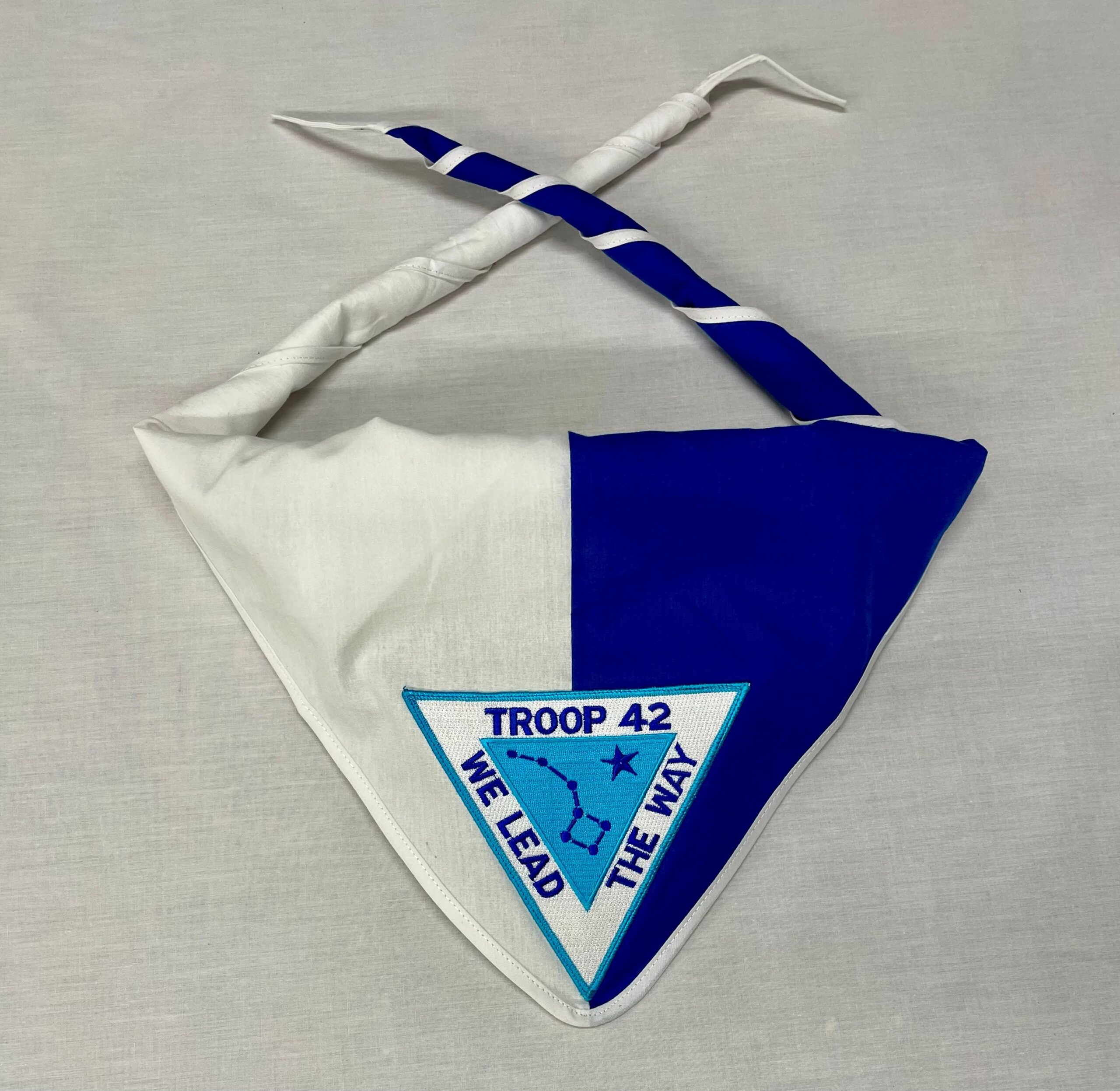 Choose from one of our ten stock designs. Pick the color of the scout neckerchief body and trim, then add you troop number, city and state to personalize.